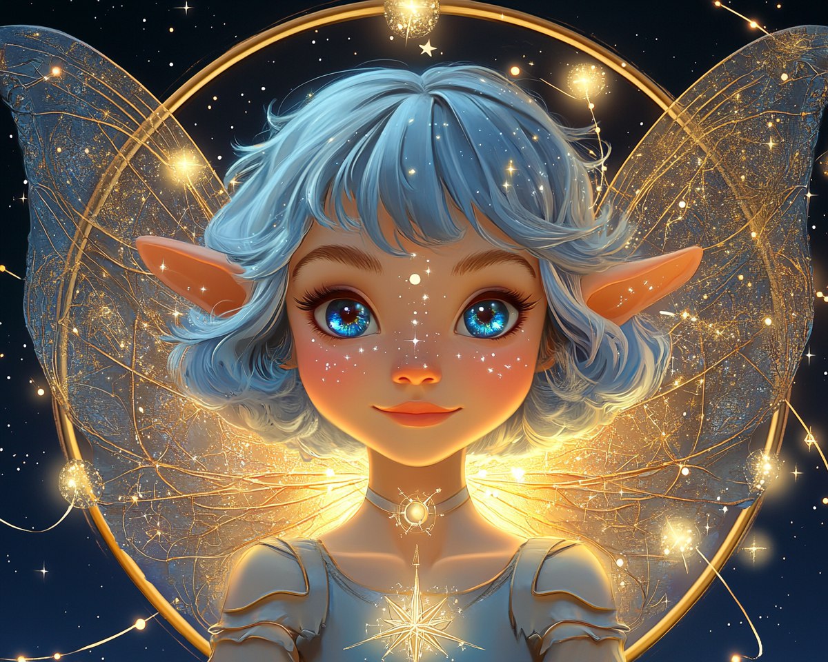 Лунария Звездная пыль — фея, чьи крылья переливаются, как ночное небо, а глаза отражают созвездия. Родилась в Звёздном Лесу, где феи учатся читать суд...