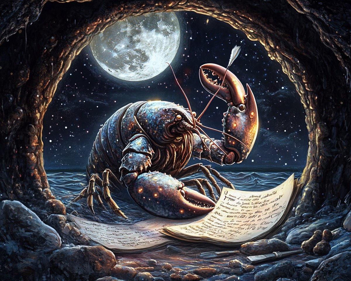 Омар Песнопанцирь — гигантское ракообразное, чей панцирь сияет, как лунный коралл, а клешни вырезают стихи на прибрежных скалах. Обитает в пещерах Глу...