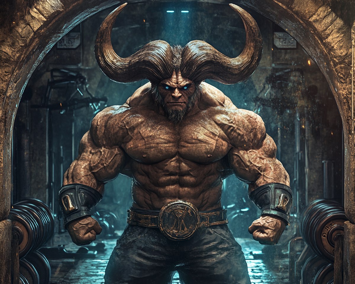 Таврос Железный Рог — минотавр, чья мощь и дисциплина сделали его легендой в мире фитнеса. Родился в лабиринтах Крита тысячи лет назад, где его сила и...