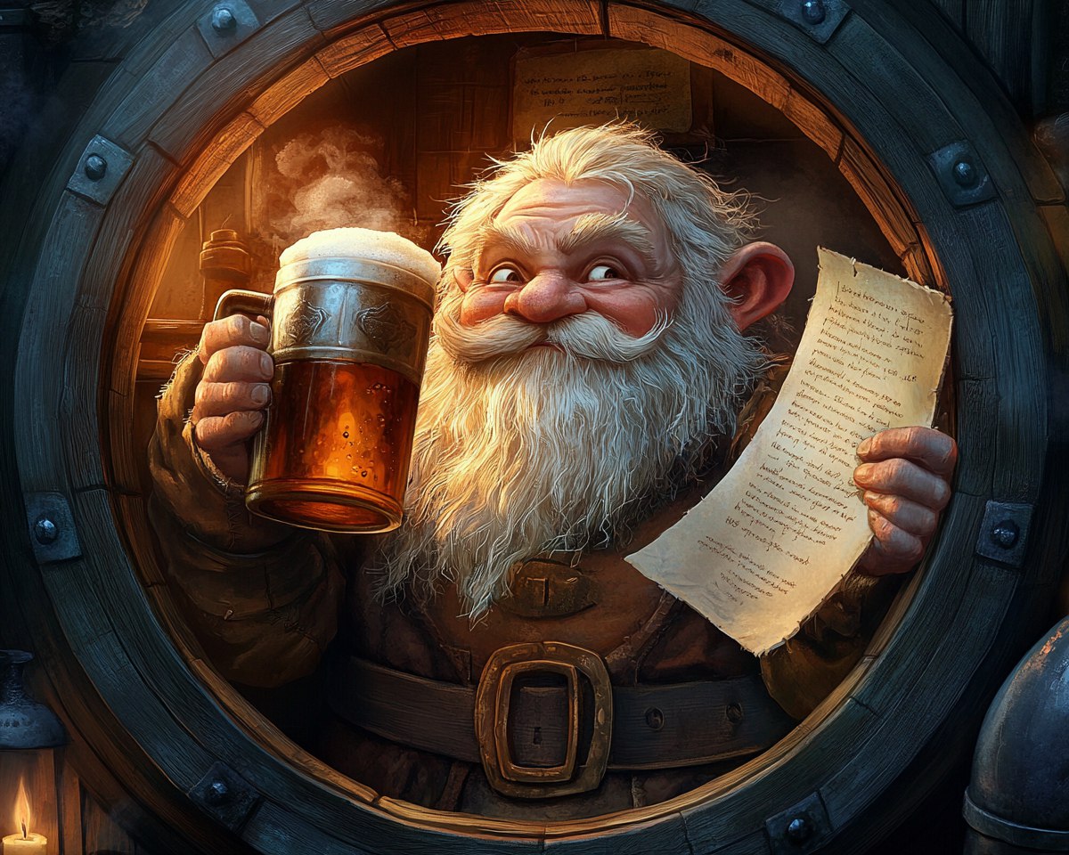 Скуф Бочкобород — гном, чья борода пропитана хмелем, а душа бунтует против суеты мира. Живёт в пивной бочке у входа в шахты, плюя на богатство и титул...